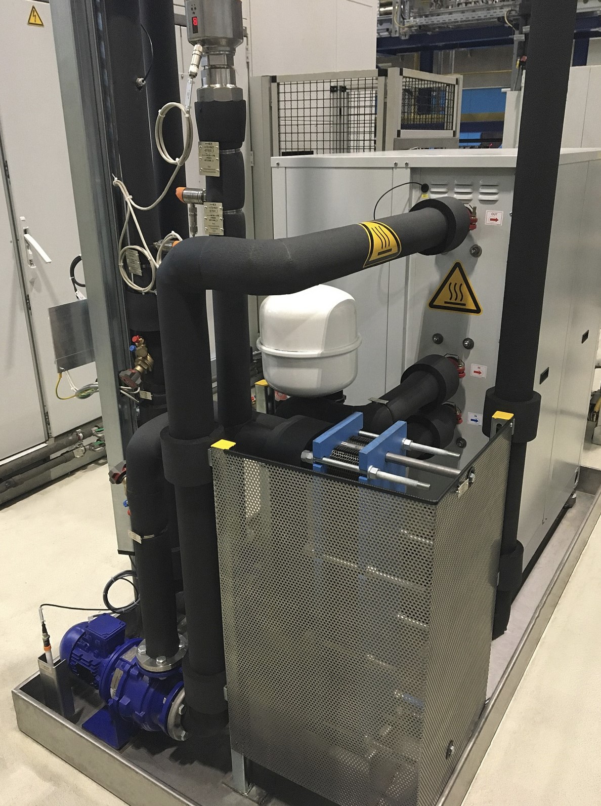Mivel a projektet a termelés megszakítása nélkül kívánták megvalósítani, az átalakítás 2022 nyarán kéthetes üzemszünetben történt. A hőszivattyú, a lemezes hőcserélő és a két új keringgető szivattyú a csarnok padlójára került a rendszer mellé. , teljesen szigetelt és védőrács veszi körül. Az ehhez szükséges terület körülbelül két euroraklap méretű. Négy új vezetékre is szükség volt. Két csatlakoztassa a rendszer tisztavíz-tartályát a hőcserélőhöz. A másik kettő szállítja a meleg vizet a hűtőkörből a hőszivattyúba, majd lehűtve vissza. Beépített kijelzővel szabályozható a hőmérséklet és az áramlás. A megtakarított fűtőteljesítményt a cég saját energiafigyelő rendszerén, energiamérővel ellenőrzi. Ez a megfigyelés, valamint a független mérnöki cég által a projekt befejezése után végzett mérések azt mutatják, hogy a tervezett megtakarításokat pontosan elérik.
