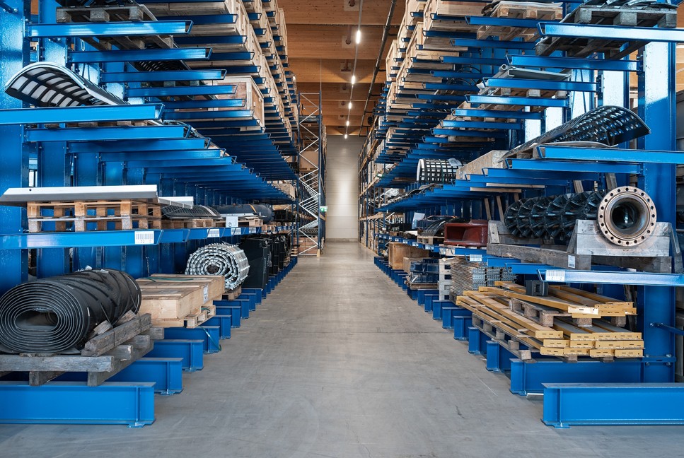 A Komptech széles termékkínálatának eltérő tárolási megoldásokra van szüksége – a kis méretű csavaroktól a több tonnás hengerekig. Ezen igények kielégítésére a cargo-partner speciális tárolási rendszereket alakított ki, amelyek minden termékcsoport számára megfelelő megoldást biztosítanak. A rendszer tartalmaz teherbíró polcokat, hosszú áruk tárolására alkalmas állványokat, valamint beépített mérlegekkel ellátott tárolókat, amelyek automatikusan érzékelik a kivett alkatrészek mennyiségét és típusát. Amennyiben a készletszint egy előre meghatározott érték alá csökken, a rendszer automatikusan utánrendelést generál.