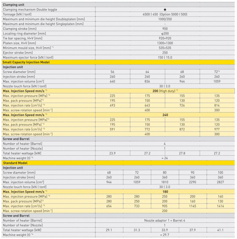 Az új FANUC ROBOSHOT a-S450iA oszloptávolsága 920×920 milliméter, záróereje 4500 kN. Két fröccsöntő egység hét csigamérettel 2827 köbcentiméteres fröccsöntési térfogatig képes dolgozni. A szerszám magassága 1000 milliméter. A sorozathoz tartozó berendezések akár 10-15 százalékkal kevesebb energiát használnak, mint a hasonló villamos gépek, illetve 70 százalékkal kevesebb erőforrást igényelnek, mint az ehhez a kategóriához tartozó hidraulikus eszközök. Mindez az intelligens energiavisszatöltő rendszernek és a kimagasló FANUC szervotechnikának köszönhető.