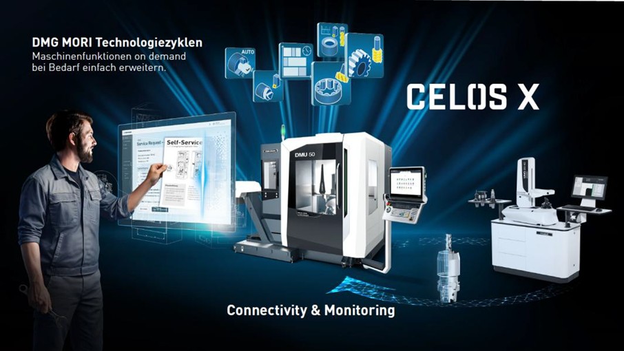 A DMG MORI a 2013-ban bevezetett, azóta folyamatosan továbbfejlesztett CELOS X vezérlőplatformmal olyan szabványt teremtett, amely utat nyit a végponttól végpontig digitalizált gyártás felé. A pfronteni Open House rendezvényen minden kiállított gép a CELOS X alkalmazásalapú gyártási platform legújabb, optimalizált verziójával lesz felszerelve, és demonstrálja annak magas szintű csatlakoztathatóságát. A DMG MORI ezt és a Digital Transformation (DX) további újdonságait a DXperience területen mutatja be – gyakorlati szempontok szerint DXoffice és DXshopfloor egységekre bontva. Az előbbi az irodai felhasználásra szánt megoldásokat mutatja be, például CAD/CAM alkalmazásokat és a CELOS DYNAMICpost megoldást az NC-programok optimalizált létrehozásához. A DXshopfloor a gépkörnyezetre és a DMG MORI által biztosított csatlakoztathatóságra fókuszál. A hálózatba kapcsolás többek között lehetővé teszi a gépadatok, a rendelkezésre állási státusz, a termelékenységi mutatók és a folyamatadatok szolgáltatását. A DMU 50 példáján – WH Cell munkadarab-kezeléssel kiegészítve – a DMG MORI bemutatja a legújabb innovációkat, amelyekkel a CELOS X tovább optimalizálja a műhelyorientált gyártást, többek között a vezetett digitális szerszámkezelést és a Green Transformation (GX) megoldásokat támogató CELOS X alkalmazásokat, valamint CELOS X widgeteket, az önkiszolgáló funkciókat a my DMG MORI felületen, továbbá igény szerint elérhető DMG MORI technológiai ciklusokat.
