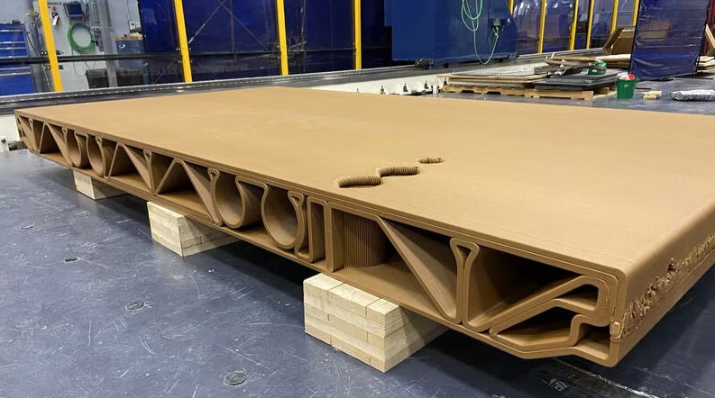 Az amerikai Oak Ridge Nemzeti Laboratórium (ORNL) és a Maine-i Egyetem kutatói egyetlen darabból álló, újrahasznosítható padlópanelt fejlesztettek ki fejlett 3D nyomtatási technológiával. Az új szerkezeti elem természetes alapanyagokat tartalmaz, és a hagyományos acélszerkezetek fenntartható alternatívájaként szolgálhat az építőiparban.