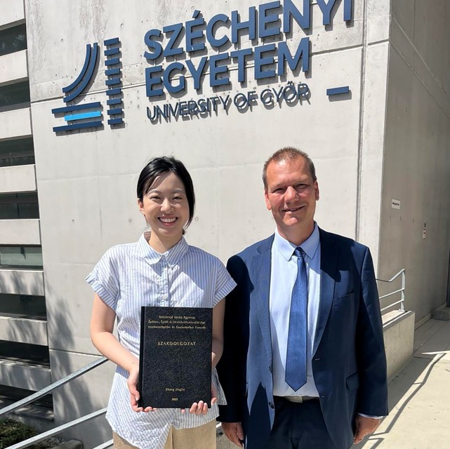 Zhang Jingjie a tanulmányai során szerzett tapasztalatait különösen hasznosnak ítélte meg, kiemelve a nyitott és támogató környezetet, amelyet a győri egyetem oktatói és társai biztosítottak számára. „A képzés nemcsak szakmai fejlődésben segített, hanem abban is, hogy magabiztosabban mozogjak nemzetközi környezetben. Különösen értékesnek tartottam a gyakorlatközpontú oktatást, a kulturális sokszínűséget és a közösség befogadó légkörét. Tanulmányaimat tovább folytatom ösztöndíjjal Magyarországon, és a jövőben is nemzetközi pályára készülök. Mindenkinek ajánlom a kettős képzést, aki szeretné fejleszteni magát, és új távlatokat kíván nyitni” – emelte ki a hallgató.