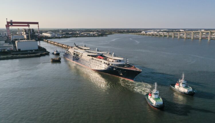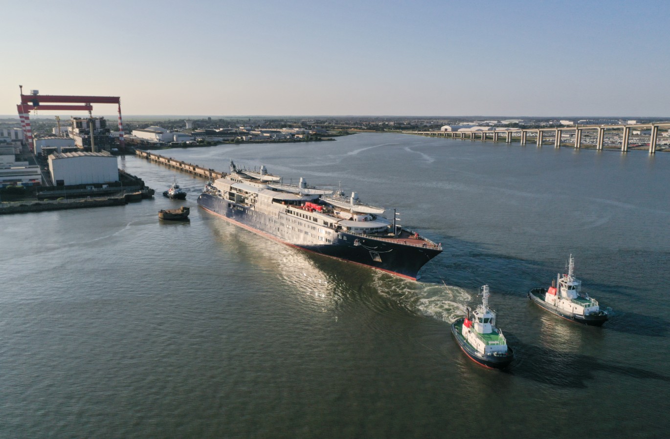 A hajó most először úszott: a dokkját feltöltötték vízzel, és miután lebegni kezdett, vontatókkal irányították át ahhoz a mólóhoz, ahol a végső felszerelése zajlik.